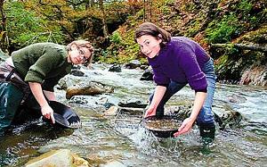 黛西便鼓動(dòng)馬丁跟她一起去淘金, 以打造一對(duì)婚戒。說干就干,黛西和馬丁前往威爾士西部重鎮(zhèn)多爾蓋萊,在那里他們找到了一條有含金沙土的河流。在黛西的帶領(lǐng)下,他們?cè)跍\水河灘上挖了很多坑,淘出沙土用平底盤仔細(xì)篩查。