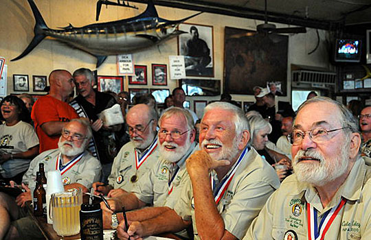 7月23日,“山寨”海明威大賽在在美國(guó)佛羅里達(dá)州海島小城基韋斯特的“邋遢喬”酒吧舉行。今年7月21日是海明威誕辰110周年紀(jì)念日。每年這個(gè)日子前后,海明威上世紀(jì)30年代曾居住過(guò)的佛羅里達(dá)州基韋斯特都會(huì)舉辦名為“海明威日”的系列紀(jì)念活動(dòng)。其中最著名的就是在“邋遢喬”酒吧舉行的海明威模仿大賽,評(píng)選模仿海明威衣著、神態(tài)最像的人。