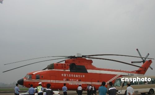 6月10日,曾參加汶川大地震救援的MI26大型直升機(jī),在重慶江北機(jī)場(chǎng)等待天氣情況好轉(zhuǎn)即飛赴武隆山體垮塌現(xiàn)場(chǎng)實(shí)施救援。據(jù)了解,MI26直升機(jī)是世界上起飛重量最大的直升機(jī),機(jī)身長(zhǎng)約40米,機(jī)高11.6米,旋翼長(zhǎng)32米,最多可容納100余人,是實(shí)施救援的主戰(zhàn)直升機(jī)。中新社發(fā) 肖漢飛 攝