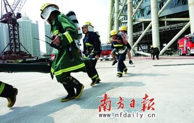 昨日(12日)上午9時(shí)30分,消防警報(bào)響徹珠江兩岸,30臺(tái)消防車(chē)呼嘯著駛向廣州新地標(biāo)——高達(dá)610米的廣州新電視塔。世界最高電視塔“失火”,上千工人緊急疏散,數(shù)十人被困火場(chǎng)。今年5月12日是全國(guó)首個(gè)“防災(zāi)減災(zāi)日”,為檢驗(yàn)超高層建筑火災(zāi)應(yīng)急處置和省城消防滅火救援能力,省減災(zāi)委員會(huì)辦公室、省公安廳于當(dāng)日上午在廣州新電視塔舉行超高層建筑滅火救援演習(xí)。