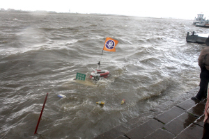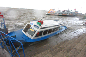 14時許,在道外區(qū)北五道街區(qū)段松花江邊的一艘小型客船被狂風(fēng)掀起的浪花撞得劇烈搖晃,灌進許多水后沉入水中,僅露出艙頂一面小旗,所幸當(dāng)時船上沒有人。