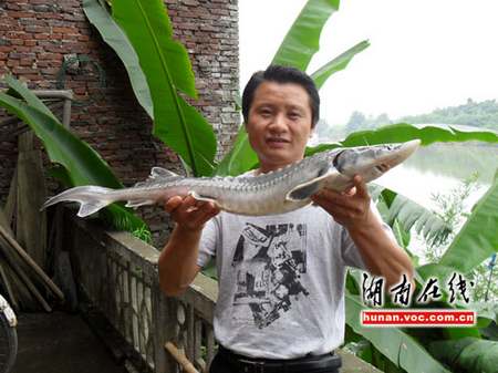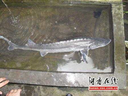“耒河里發(fā)現(xiàn)了野生的中華鱘!兩天內(nèi)連續(xù)兩條被卡在水電站的閘門里!苯,耒陽網(wǎng)友黃市鎮(zhèn)村民李金鍵向記者爆料:在耒陽市耒河段發(fā)現(xiàn)了中華鱘,并稱此事在當(dāng)?shù)匾鹆瞬恍〉恼痼@。