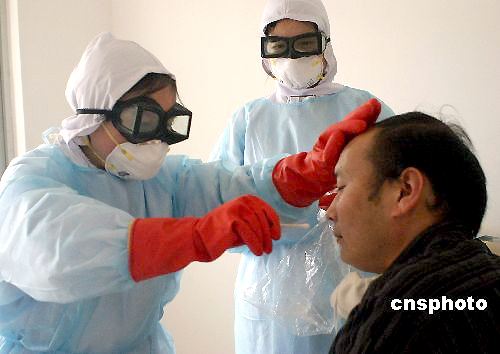 6月2日,為檢驗全縣衛(wèi)生系統(tǒng)在防控甲型H1N1流感方面的應(yīng)急反應(yīng)和應(yīng)急處理能力,保障災(zāi)區(qū)群眾生命健康,陜西寧強縣衛(wèi)生局組織縣醫(yī)院、縣疾控中心等醫(yī)療衛(wèi)生單位在縣醫(yī)院進(jìn)行甲型H1N1流感應(yīng)急演練。使甲型H1N1流感防控工作由單兵演練轉(zhuǎn)變?yōu)槎鄦挝粎⑴c、系統(tǒng)內(nèi)部協(xié)作階段更貼進(jìn)甲型H1N1流感防控實際需要。 中新社發(fā) 黎徳華 攝