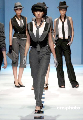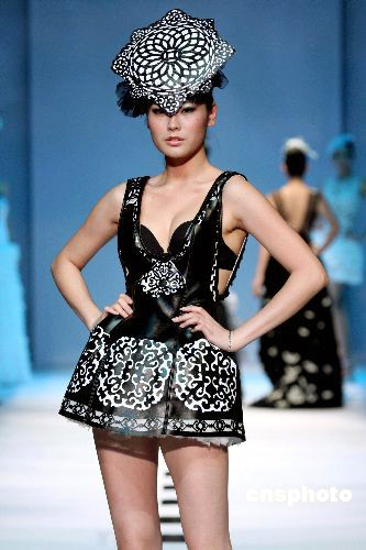 6月3日晚,“廣州國際輕紡城”2009廣東大學(xué)生優(yōu)秀服裝設(shè)計(jì)大賽總決賽暨指定面料團(tuán)體創(chuàng)意設(shè)計(jì)大賽在廣州國際輕紡城舉行。經(jīng)過“51進(jìn)25”篩選出來的17所院校的精英作品爭(zhēng)奪金、銀、銅獎(jiǎng)和最佳工藝制作獎(jiǎng)、最佳創(chuàng)意獎(jiǎng)、最佳面料獎(jiǎng)以及優(yōu)秀獎(jiǎng)。 中新社發(fā) 劉衛(wèi)勇 攝