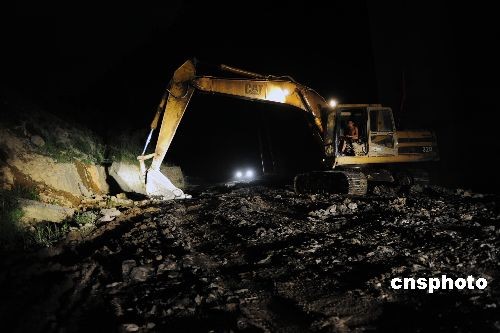 6月7日,大型救援設(shè)備駛?cè)胫貞c武隆山體垮塌現(xiàn)場。從6月6日17點(diǎn)開始,重慶市交委從渝湘高速公路建設(shè)工地調(diào)集了150余名技術(shù)骨干和20臺挖掘機(jī)、裝載機(jī)、壓路機(jī)、大型貨車,抽調(diào)武隆交通部門和沿線市民150余人及25臺大型機(jī)械設(shè)備對通往鐵礦鄉(xiāng)的28公里救援通道進(jìn)行搶修。中新社發(fā) 劉確樹 攝