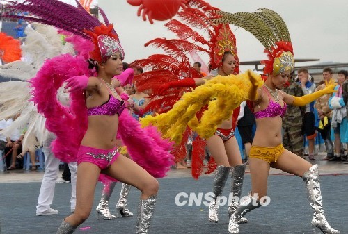 2009年7月18日,以“盛世中華,歡樂沙!睘橹黝}的2009大連國(guó)際沙灘文化節(jié)在金石灘黃金海岸隆重開幕。在為期一個(gè)月的時(shí)間內(nèi),將舉辦沙灘群眾體育系列活動(dòng)、市民沙雕大賽、“快樂一家”家庭海灘趣味賽、沙灘節(jié)攝影大賽、沙灘文化節(jié)金石小姐大賽、沙灘節(jié)寶貝評(píng)選、首屆金石灘海泥狂歡節(jié)、大連發(fā)現(xiàn)王國(guó)夏日狂歡節(jié)等十項(xiàng)活動(dòng)。中新社發(fā) 王錫增 攝
