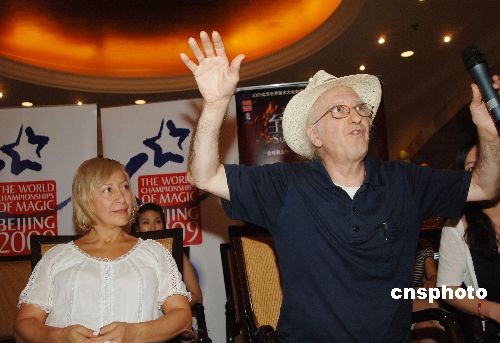 7月20日,2009北京世界魔術(shù)大會(huì)召開(kāi)發(fā)布會(huì),宣布開(kāi)幕式晚會(huì)預(yù)演將于7月21日至23日在北京保利劇院拉開(kāi)帷幕。9位在國(guó)內(nèi)外獲得金獎(jiǎng)的魔術(shù)師將亮相本次晚會(huì),獲得中國(guó)雜技“金菊獎(jiǎng)”金獎(jiǎng)的農(nóng)民魔術(shù)師汪奇魔、“金菊獎(jiǎng)”全國(guó)魔術(shù)比賽金獎(jiǎng)獲得者傅琰東、曾獲“寶豐杯”全國(guó)魔術(shù)金獎(jiǎng)的戚原睿、首次展示“水里變魔術(shù)”的鄔鵬程將同臺(tái)表演。圖為將于本次大會(huì)獻(xiàn)藝的西班牙著名魔術(shù)師胡安(右)暢談“魔幻奧秘”。中新社發(fā) 李學(xué)仕 攝