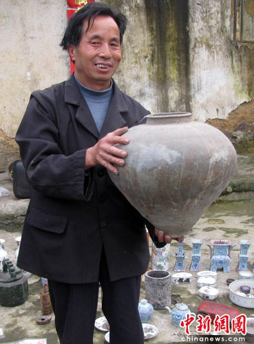 中新網(wǎng)重慶6月17日電 (劉發(fā)生) 重慶秀山土家族苗族自治縣農民趙家財對收藏幾近癡迷,22年間,他幾乎傾盡自己所有財產(chǎn)從民間收購了近200件藏品。