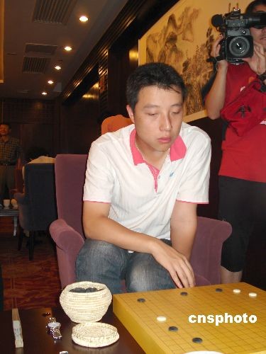 7月9日,古力正在參加中國(guó)圍甲第十輪的比賽。當(dāng)日,2009年中國(guó)圍棋甲級(jí)聯(lián)賽第10輪比賽在南昌開戰(zhàn),三冠王上海隊(duì)將主場(chǎng)移師江西南昌,與傳統(tǒng)勁敵衛(wèi)冕冠軍的圍甲七冠王重慶隊(duì)展開角逐。經(jīng)過近7個(gè)小時(shí)的鏖戰(zhàn),最終重慶隊(duì)以3-1戰(zhàn)勝上海隊(duì)。中新社發(fā) 胡宇 攝
