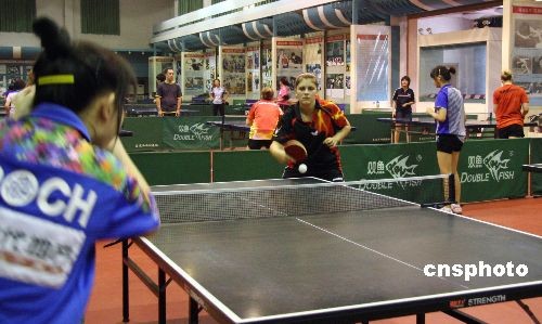 近日,多國運動員陸續(xù)抵達被譽為中國乒乓球“福地”的河北正定國家乒乓球訓(xùn)練基地,參加“2009國際乒乓球訓(xùn)練營”集訓(xùn)。訓(xùn)練營吸引了來自印度、尼日利亞國家隊,瑞典、美國、法國、加拿大國家青年隊,歐洲聯(lián)隊以及薩爾瓦多、巴拉圭、古巴、以色列、波蘭、意大利等國家的青少年運動員,還有來自中國香港的小隊員共計200多名。訓(xùn)練營將于8月中旬結(jié)束,屆時將有部分國家的選手轉(zhuǎn)赴天津參加中國乒乓球公開賽。圖為加拿大國家隊的女球手在“夏練三伏”。中新社發(fā) 翟羽佳 攝