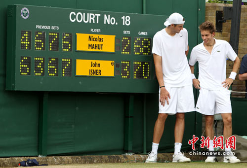 6月24日,2010年的溫布爾登網(wǎng)球大滿貫創(chuàng)造了一項(xiàng)吸引人眼球的紀(jì)錄。在男單首輪比賽中,法國(guó)的馬胡和美國(guó)大炮伊斯內(nèi)爾在決勝盤(pán)長(zhǎng)盤(pán)中制造了一系列恐怖紀(jì)錄。整場(chǎng)比賽耗時(shí)665分鐘,這是網(wǎng)球歷史上第一次一場(chǎng)比賽分3天來(lái)完成。