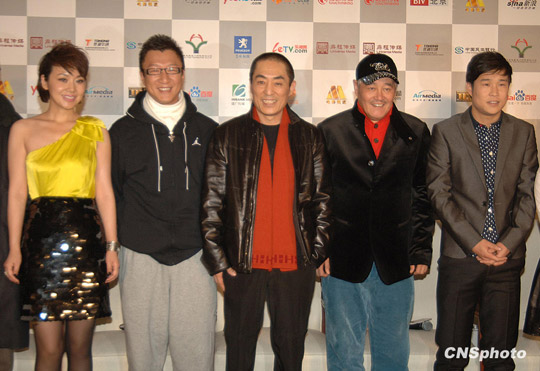12月9日下午,張藝謀喜劇新作《三槍拍案驚奇》在京舉行首映發(fā)布會,導演張藝謀、大病初愈的趙本山攜孫紅雷、小沈陽、閆妮、倪大洪、程野、毛毛全明星主創(chuàng)團隊齊齊亮相,F(xiàn)場張藝謀、趙本山、小沈陽搞笑不斷,引得爆笑連連,上演了一出戲外喜劇。趙本山首度回應了花兩億購買私人飛機一事,稱還沒有定下來。張藝謀表示會和“趙家班”繼續(xù)深度合作,并且豪言預計未來的中國電影單部影片票房可能達到2億美元。圖為張藝謀、趙本山、小沈陽成為“笑彈”。中新社發(fā) 李學仕 攝