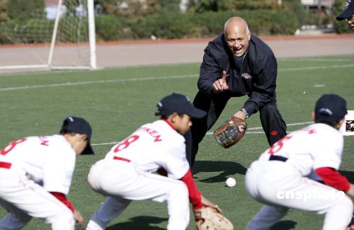 10月31,入選棒球名人堂的前美國(guó)職業(yè)棒球運(yùn)動(dòng)員卡爾·瑞普金在北京大成學(xué)校教學(xué)生打棒球。這是他以美國(guó)國(guó)務(wù)院派遣的美國(guó)公共外交特使的身份進(jìn)行的首次出訪(fǎng)。瑞普金將訪(fǎng)問(wèn)北京、上海和廣州,在這三個(gè)城市中,瑞普金將與青少年進(jìn)行接觸,相互進(jìn)行文化交流,同時(shí)為更多的新手講解棒球運(yùn)動(dòng)?·瑞普金是棒球運(yùn)動(dòng)有史以來(lái)空前的鐵人紀(jì)錄保持者,也是美國(guó)棒球名人堂成員之一。他是棒球史上僅有的取得400次本壘打和擊中3000次的八位知名球員之一。2007年7月29日,他以史上最高得票數(shù)入選美國(guó)棒球名人堂。中新社發(fā) 杜洋 攝
