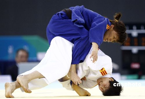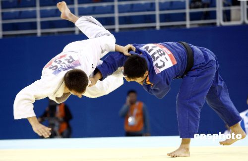 十一月十六日,“好運北京”2007年北京國際柔道公開賽在北京科技大學體育館進行,比賽分為男子八十一公斤級和女子六十三公斤級。中新社發(fā) 盛佳鵬 攝