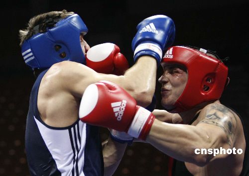 十一月十九日,“好運(yùn)北京”2007年國(guó)際拳擊邀請(qǐng)賽在北京工人體育館進(jìn)行第四單元的比賽,本次邀請(qǐng)賽有來(lái)自十七個(gè)國(guó)家和地區(qū)的十八支隊(duì)伍參加,采用單敗淘汰制方式,進(jìn)行預(yù)賽、半決賽、決賽共七十場(chǎng)比賽,比賽時(shí)間為十一月十七日至二十二日。中新社發(fā) 盛佳鵬 攝