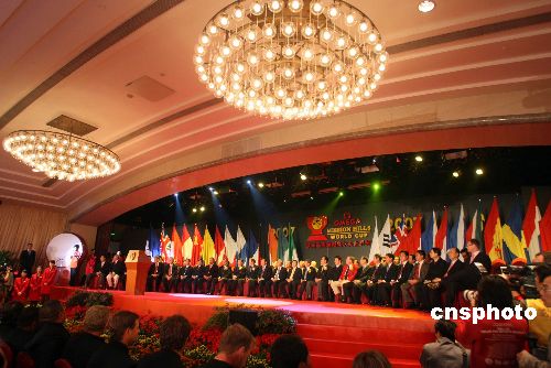 十一月二十一日,二〇〇七歐米茄觀瀾湖高爾夫世界杯開幕式在深圳觀瀾湖東莞會(huì)所舉行,來自二十八個(gè)國家五十六名球手齊聚觀瀾湖展開高爾夫世界杯的角逐。中新社發(fā) 陳文 攝