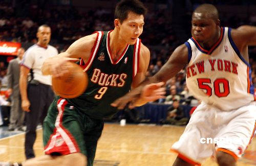 當?shù)貢r間十一月三十日,中國球員易建聯(lián)隨其所在的密爾沃基雄鹿隊作客紐約麥迪遜花園廣場。在48分鐘比賽中領(lǐng)先了42分鐘,之后不僅把17分的領(lǐng)先優(yōu)勢喪失殆盡,而且最后兩分鐘讓尼克斯隊以91:88實現(xiàn)大翻盤。易建聯(lián)首發(fā)打了29分鐘入賬8分,其中陣地進攻7投3中,罰球2罰2中。中新社發(fā) 李靜 攝