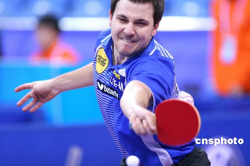 12月15日,2007年國際乒聯(lián)職業(yè)巡回賽總決賽男子單打1/4決賽在北京大學(xué)體育館進(jìn)行。在東道主選手馬琳與德國悍將波爾的較量中,馬琳歷經(jīng)六局苦戰(zhàn),最終4-2力克波爾。中新社發(fā) 富田 攝
