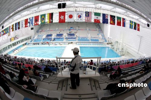 2月1日,“好運北京”2008年中國游泳公開賽首場決賽在“水立方”游泳館舉行。中新社發(fā) 吳芒子 攝
