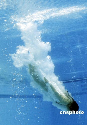 “跳水女皇”郭晶晶落后隊友吳敏霞5.15分名列第二。中新社發(fā) 富田 攝