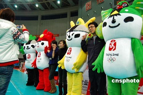 圖:中古女排對抗賽 奧運(yùn)福娃成場外大明星