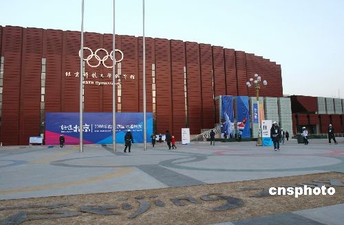 2月26日,“好運北京”2008跆拳道國際邀請賽在北京科技大學開幕,本次比賽共有來自27個國家和地區(qū)的運動隊報名參賽。圖為北京科技大學體育館,該場館將承擔奧運會柔道、跆拳道和殘奧會輪椅籃球、輪椅橄欖球四個項目的比賽。中新社發(fā) 富田 攝