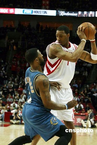 當(dāng)?shù)貢r(shí)間2月26日晚,失去姚明的休斯敦火箭隊(duì)“化悲痛為力量”,坐鎮(zhèn)主場(chǎng)以94-69橫掃奇才拿下13連勝。麥迪在姚明缺陣的情況下帶領(lǐng)全隊(duì)全面開花。中新社發(fā) 楊晉升 攝