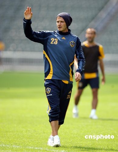 三月八日,英國足球巨星、現(xiàn)效力于美國洛杉磯銀河隊的貝克漢姆在香港大球場與球隊一起訓練,備戰(zhàn)九日將舉行的表演賽。中新社發(fā) 武仲林 攝