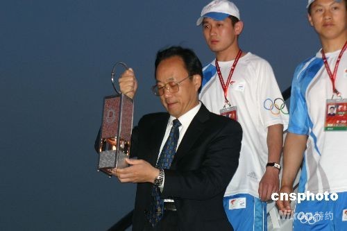 4月14日凌晨5時(shí)14分,載著北京奧運(yùn)圣火的“奧運(yùn)圣火號(hào)”飛抵馬斯喀特,奧運(yùn)圣火再度照耀亞洲大陸。北京奧運(yùn)圣火在馬斯喀特的傳遞將從陳列“蘇哈爾號(hào)”木船的布斯坦環(huán)島出發(fā),經(jīng)過希達(dá)卜港、阿萊姆王宮、馬斯喀特之門景區(qū)、馬斯喀特海濱大道、穆特拉赫傳統(tǒng)市場(chǎng)等重要景點(diǎn),最后在庫(kù)魯姆國(guó)家公園舉行火炬?zhèn)鬟f結(jié)束儀式,整個(gè)路線長(zhǎng)度約為20公里。圖為北京市副市長(zhǎng)、北京奧組委執(zhí)行副主席劉敬民手執(zhí)奧運(yùn)圣火燈走下飛機(jī)舷梯。中新社發(fā) 沈晨 攝