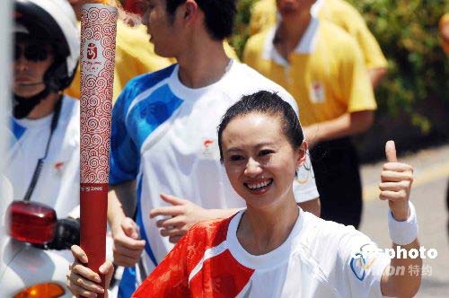 圖:戴菲菲傳遞深圳站奧運火炬第三棒