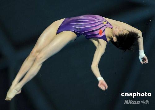 5月30日,2008年國(guó)際泳聯(lián)美的世界跳水系列賽女子十米臺(tái)決賽在南京奧體中心游泳館進(jìn)行,中國(guó)選手陳若琳獲得冠軍。世錦賽冠軍王鑫由于在第一跳出現(xiàn)重大失誤得到零分,最終與獎(jiǎng)牌無(wú)緣。中新社發(fā) 劉建民 攝