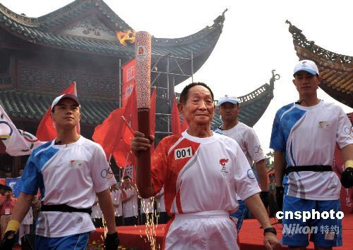 圖:袁隆平領(lǐng)跑奧運圣火湖南傳遞首棒