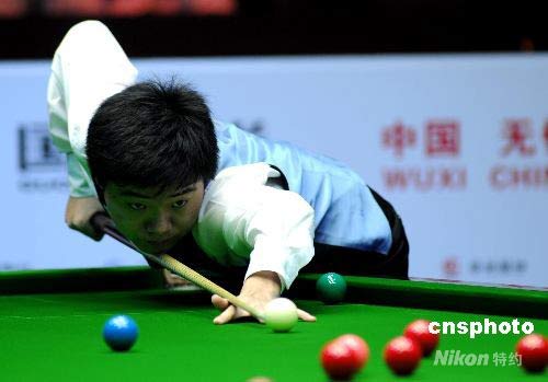 2008年6月8日下午,2008世界斯諾克江蘇精英賽決賽在無(wú)錫體育中心體育館結(jié)束。丁俊暉以6比5戰(zhàn)勝英格蘭選手塞爾比奪得冠軍。中新社發(fā) 劉建民 攝