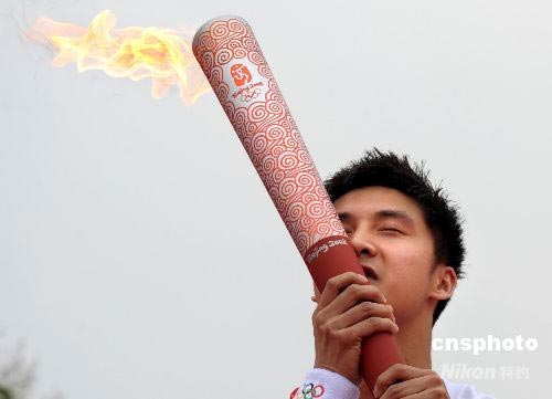 圖:跳水王子田亮深情親吻燃燒的"祥云"