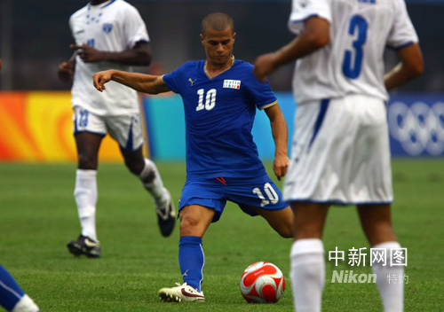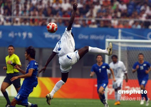 8月7日,北京奧運(yùn)男足比賽開(kāi)賽,洪都拉斯隊(duì)與意大利隊(duì)比賽在秦皇島奧體中心舉行,上半場(chǎng)意大利隊(duì)2:0暫時(shí)領(lǐng)先洪都拉斯隊(duì)。中新社記者 劉新 攝