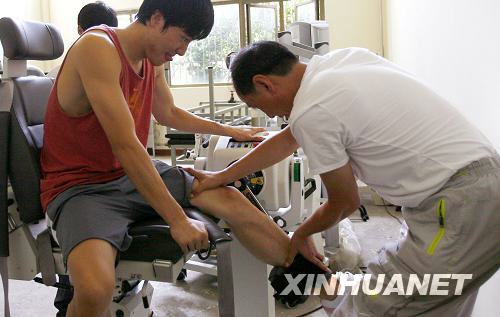 劉翔在進(jìn)行腿部練習(xí)。新華社記者 凡軍攝