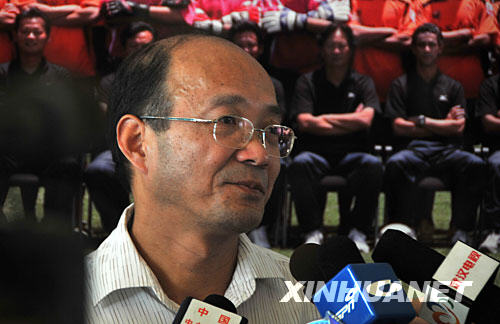 10月2日,湖北武漢職業(yè)足球俱樂部總經(jīng)理徐志強(qiáng)在新聞發(fā)布會(huì)上接受媒體采訪,就宣布正式退出中超聯(lián)賽一事對(duì)媒體進(jìn)行說明。 新華社記者萬后德攝