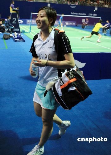 11月21日,在上海進(jìn)行的2008年中國羽毛球公開賽女子單打1/4決賽中,現(xiàn)世界排名第一、香港選手周蜜以0比2不敵中國小將朱晶晶,無緣四強(qiáng)。中新社發(fā) 湯彥俊 攝