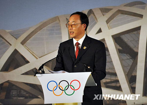 北京市副市長(zhǎng)、北京奧組委執(zhí)行副主席劉敬民在開(kāi)幕式上講話。