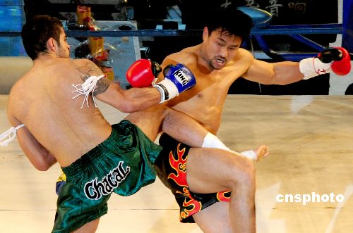 1月17日晚,在“武林風(fēng)”第三屆環(huán)球拳王爭(zhēng)霸賽在河南洛陽(yáng)舉行。環(huán)球拳王爭(zhēng)霸賽是河南電視臺(tái)和日本富士電視臺(tái)合作主辦的一項(xiàng)大型中外武術(shù)交流活動(dòng)。中新社發(fā) 高山岳 攝