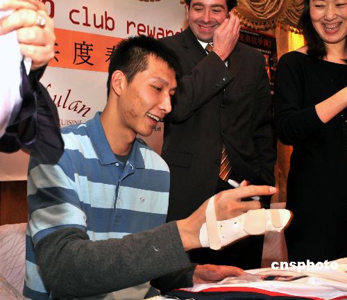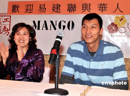 當(dāng)?shù)貢r(shí)間1月29日,在新澤西網(wǎng)隊(duì)效力的易建聯(lián)來(lái)到紐約,與紐約華人一起歡度春節(jié)。中新社發(fā) 龔文謨 攝
