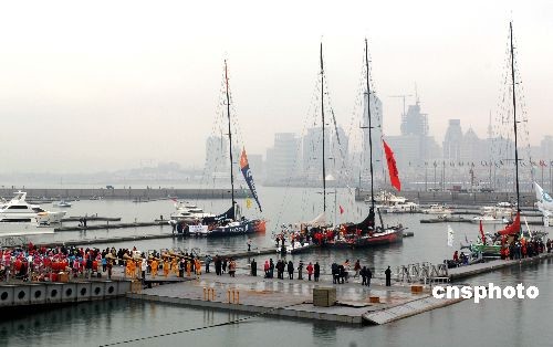 2月14日,2008-2009年沃爾沃環(huán)球帆船賽青島站舉行起航儀式。據(jù)悉,為了讓民眾充分領(lǐng)略沃爾沃環(huán)球帆船賽的魅力,青島站組委會向公眾免費開放奧帆中心,吸引了大量游客。截至當日,青島奧帆中心共接待海內(nèi)外觀眾四十余萬人次。沃爾沃環(huán)球帆船賽是繼奧帆賽、殘奧帆賽后,青島承辦的又一項全球頂級專業(yè)帆船賽事,也是中國首次在冬季寒冷氣候下在北方水域承辦的帆船賽事。中新社發(fā) 衛(wèi)卿 攝