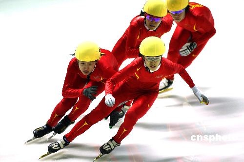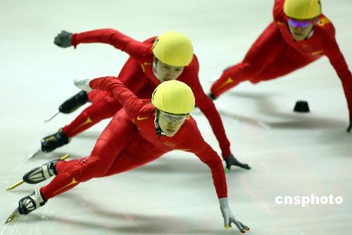 2月20日,大冬會(huì)短道速滑比賽在哈爾濱理工大學(xué)滑冰館繼續(xù)進(jìn)行。在女子500米的比賽中,中國選手表現(xiàn)神勇,包攬了該項(xiàng)比賽的前四名。其中劉秋宏(前)以44秒862的成績問鼎冠軍,為中國隊(duì)在本屆大冬會(huì)上奪得第二枚金牌。李文文和孟曉雪分獲銀牌與銅牌,成績?yōu)?4秒929和45秒084。中新社發(fā) 富田 攝