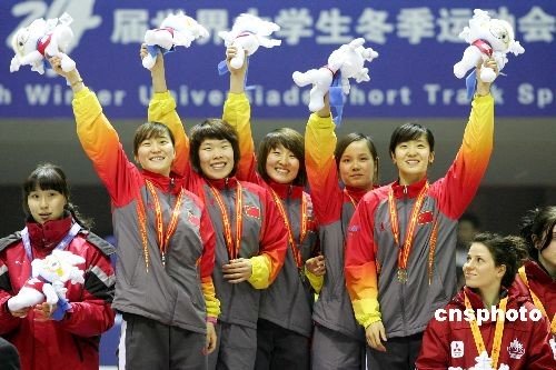 2月23日,第24屆大冬會短道速滑比賽全部結(jié)束,在女子3000米接力比賽的爭奪中,中國隊(duì)?wèi){借著強(qiáng)大的實(shí)力,以4分07秒119順利奪冠,此前已經(jīng)奪取500米和1000米金牌的劉秋宏,順利成為三冠王。中新社發(fā) 富田 攝