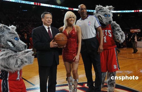 當(dāng)?shù)貢r(shí)間3月8日晚,美國大紐約地區(qū)“2009中華之夜”晚會(huì)在NBA新澤西網(wǎng)隊(duì)主場(chǎng)舉行,在NBA賽場(chǎng)吹出一陣“中國風(fēng)”,眾多美國球迷在觀看球賽之余,也飽覽了一場(chǎng)中華文化盛宴。圖為中國駐紐約總領(lǐng)事彭克玉在演出現(xiàn)場(chǎng)。中新社發(fā) 魏晞 攝