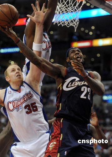 當(dāng)?shù)貢r(shí)間三月十日晚,NBA東部賽區(qū)暫列第一的克利夫蘭騎士隊(duì)在客場(chǎng)上演大逆轉(zhuǎn),在落后十九分的情況下,最終以八十七比八十三戰(zhàn)勝洛杉磯快船隊(duì)。騎士隊(duì)球星勒布朗·詹姆斯打出“三雙”,貢獻(xiàn)三十二分、十三個(gè)籃板和十一次助攻。中新社發(fā) 張煒 攝