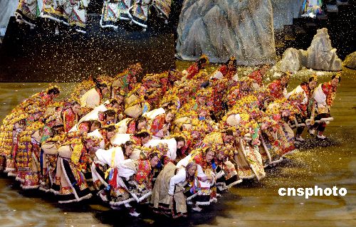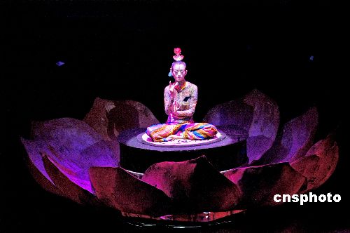 10月23日,楊麗萍扮演藏族女神荷花度母。當(dāng)日,由著名舞蹈家楊麗萍和藏族歌手容中爾甲主演的大型藏族原生態(tài)歌舞樂(lè)《藏謎》在上海大劇院上演。中新社發(fā) 董鴻景 攝