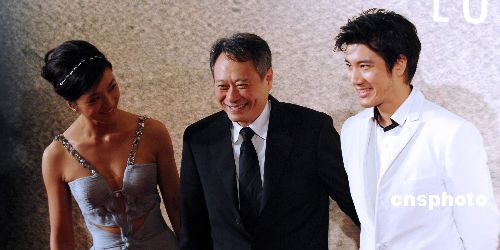 十月三十一日晚,《色,戒》在上海啟動(dòng)內(nèi)地上映,導(dǎo)演李安(中)和主演湯唯(左)、王力宏出席儀式。 該影片已經(jīng)在中國(guó)香港和臺(tái)灣地區(qū)創(chuàng)造了新的票房紀(jì)錄。中新社發(fā) 曹子琛 攝