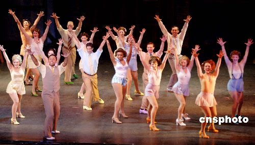 2007年11月23日晚,來自美國(guó)百老匯的音樂劇《42街》在西安人民大廈劇場(chǎng)隆重上演。激情的踢踏舞、絢麗的舞臺(tái)、美妙的歌聲,為西安觀眾帶來了一場(chǎng)視聽震撼。中新社發(fā) 李海軍 攝