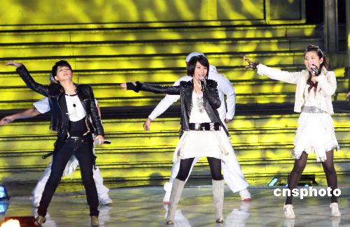 11月28日晚,臺灣知名組合S.H.E,韓國歌手安七炫放歌重慶市南川區(qū),為當日開幕的首屆渝南黔北地區(qū)(南川)區(qū)域合作經(jīng)貿(mào)洽談會助興。中新社發(fā) 郭晉嘉 攝